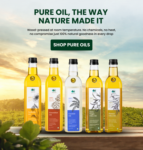 Cold pressed oil means that oil is extracted at room temperature through crushing of oil seeds using a mechanical method which helps oil retain its natural healthy nutrients.No chemicals, solvents & additives are used. Cold pressed oil can be used both topically and internally, excellent for cooking and baking. It is also a fantastic health supplement, skin and hair care product. During hot press oil process, the oil seeds is roasted and oil is extracted using expeller. Refined oils are extracted using hot press process. This is done at very higher temperatures, typically above 100° celsius which degrades the quality of the oil and requires further processing methods such as bleaching and deodorizing which is harmful for our health.