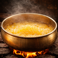 During slow heating,impurities settle naturally, leaving clear, golden pure A2 bilona ghee readyfor safe and hygienic consumption.