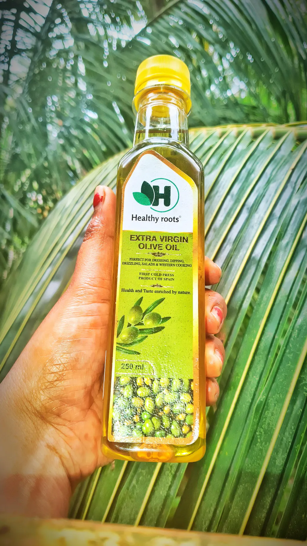 It is made up of fresh olive. It is suitable for salad, cooking, hair care. It's texture is light. It is rich in vitamin E & K. It is cold pressed extra virgin olive oil.